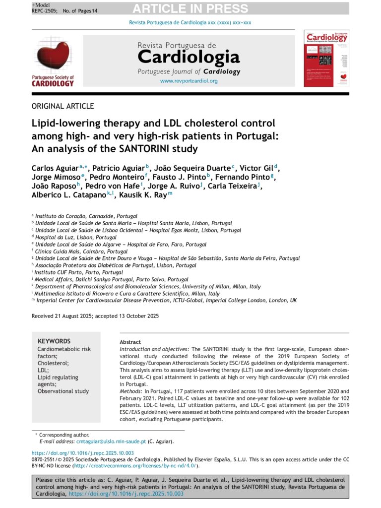 Manuscrito SANTORINI-PT pulicado online na Revista Portuguesa de Cardiologia