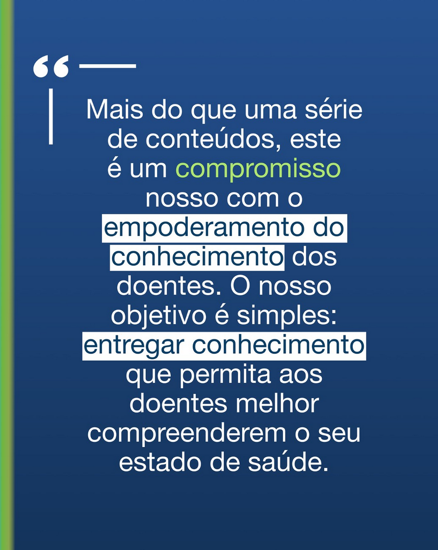 Cada episódio terá 20 segundos, e acreditamos que é neste formato conciso que reside a força da iniciativa: quanto mais informados estiverem os doentes, mais ativa se torna a sua participação nos cuidados, mais rico é o diálogo e maior é a confiança.
